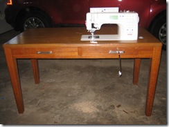 Louie and I have been hunting for a table that would transform into a nice sewing table for my friend Renea. We found one yesterday that we thought would work perfect, and Renea agreed. We have the same sewing machines, so Louie could use my machine to make a perfect fit. He is getting really good at dropping machines into tables, as he has done two for me (one for my Janome and one for my Juki), and three for friends of mine who all have Janome 6600’s.